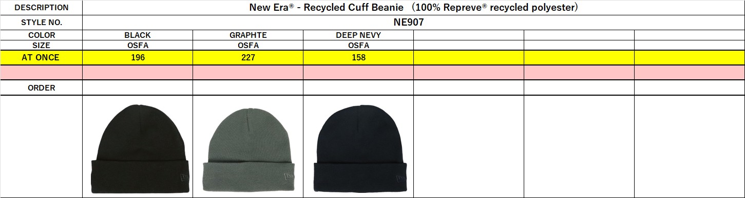 NEW ERA (ニューエラ) NE907 New Era KNIT Beanie - Recycled Cuff Beanie キャップ ニット帽 A01