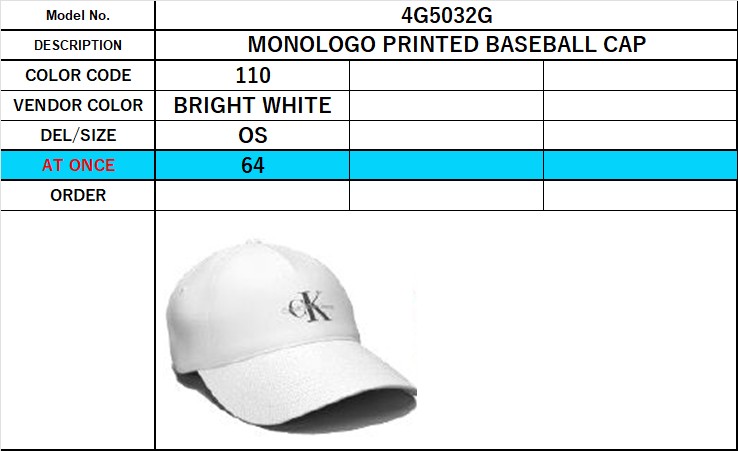 Calvin Klein (カルバンクライン) SPRING PROMO25 MONOLOGO PRINTED BASEBALL CAP キャップ A01