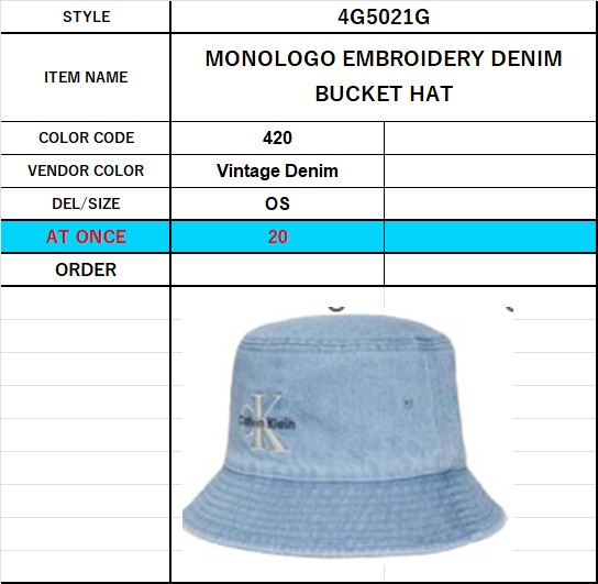 Calvin Klein (カルバンクライン) SPRING PROMO25 MONOLOGO EMBROIDERY DENIM BUCKET HAT バケハ バケットハット A01